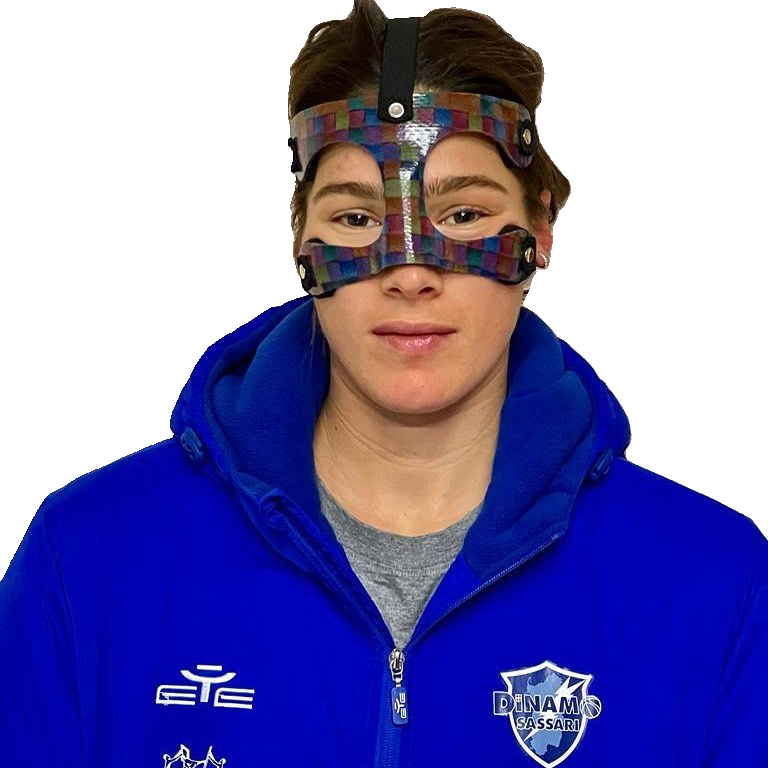 Ortsan Officine Ortopediche progetta a realizza a Sassari, la maschera di protezione in carbonio su misura per atleti di tutte le discipline sportive.